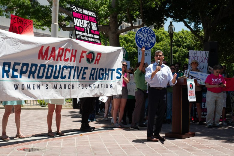 Secretary of Health & Human Services Xavier Becerra speaks at a reproductive rights rally in front of Los Angeles City Hall, June 24. (SFVS/el Sol Photo/Semantha Raquel Norris)